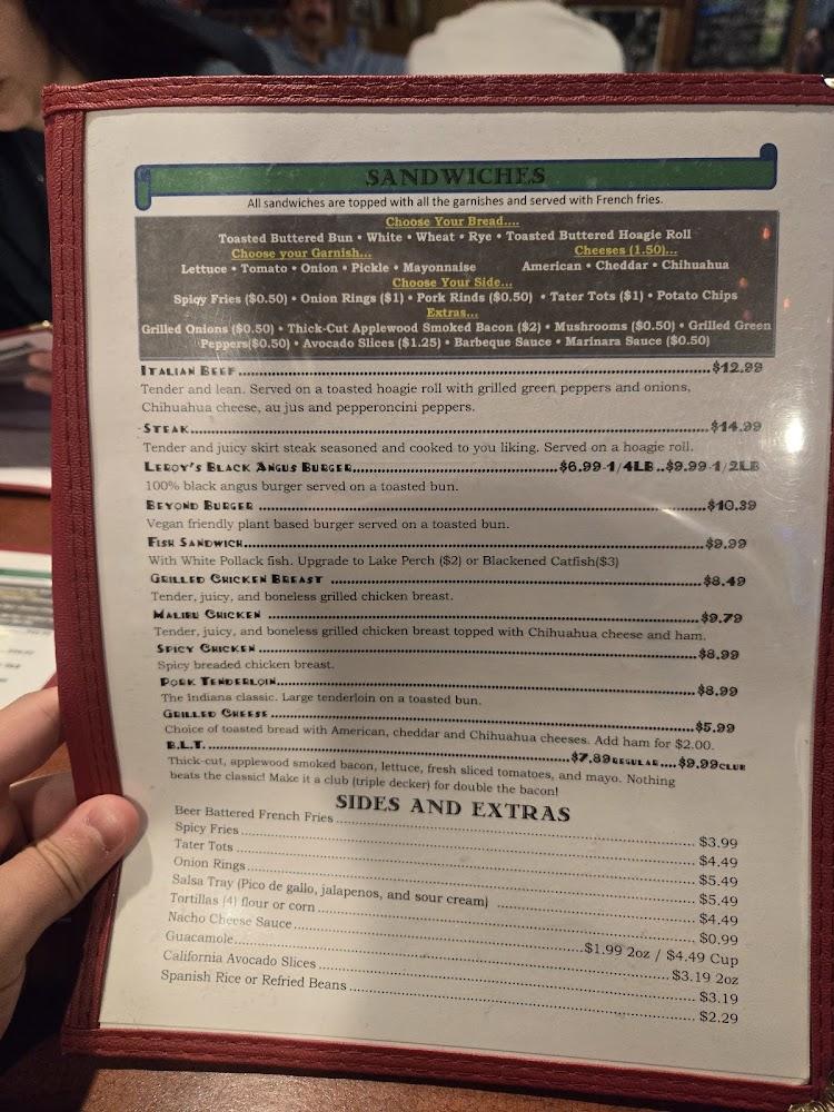 The menu at Leroy's "Hot Stuff" offers a delightful mix of traditional Mexican dishes and American favorites. With over 180 options, there's something for everyone. Guests can choose from a variety of tacos, burritos, and appetizers like nachos and quesadillas.